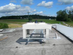 Die Container lassen sich mit einem Lkw mit Kran anheben und aufstellen.